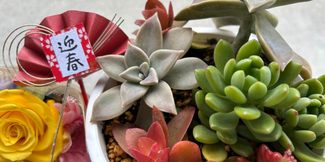 と思っていたら、ありました良いこと(о´∀`о)ご利用者さまのご家族から、こんな素敵な多肉植物の寄せ植えをいただきました!
