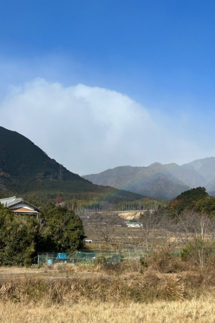 上の写真は、鈴鹿山脈にほど近い場所です。見た目では分からないですが、すっごく風が強くて寒いです。が、くっきりとした青空、山々から続く一本道、鈴鹿おろしでうっすらとかかる虹。厳しいけれど明るい、先の開けるような風景でした。縁起が良さそうです。いいことがありますように(^^)