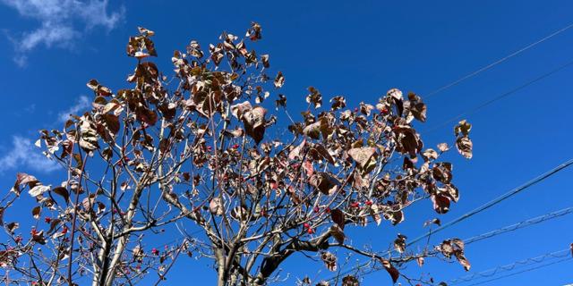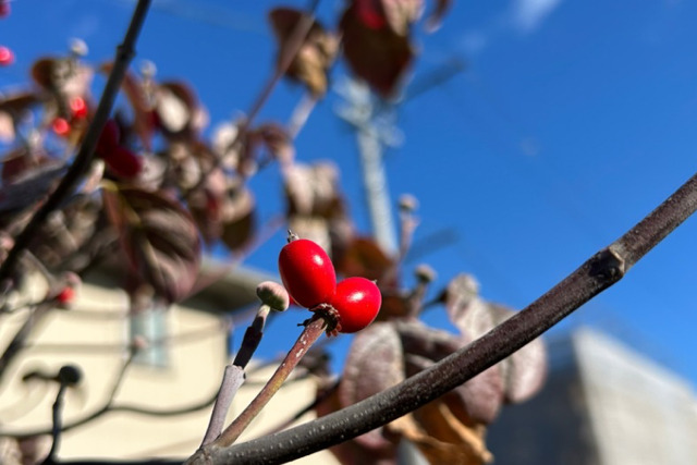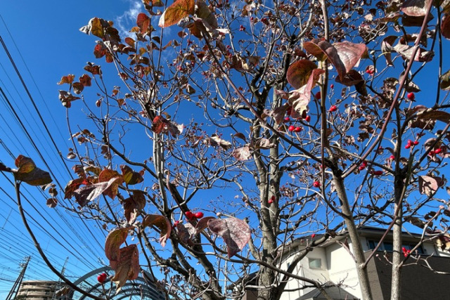 先日、線路沿いにある遊歩道を歩いていたら、街路樹に実がなっているのを次々に発見しました。赤や黒っぽい木の実、秋らしいですね。