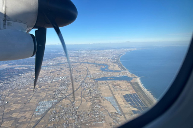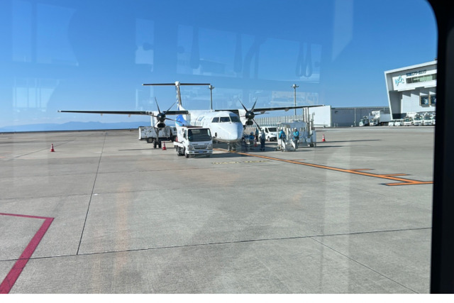 搭乗ゲートからは航空会社の車いすに乗り換え、自分の車いすは貨物室に積んでもらったそうです。小さなプロペラ機で通路が狭く乗降が大変だったけど、たくさんのスタッフがこころよく手助けしてくれたそうです。