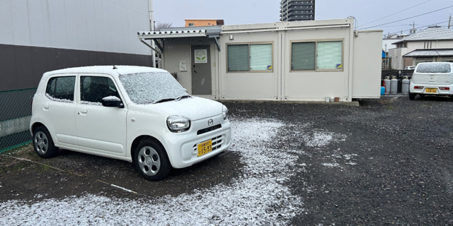 事務所と社用車も雪化粧。
