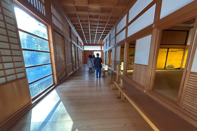 名古屋のお殿様の部屋より豪華ってどういうことかと思ったら、江戸から泊まりに来た将軍様の部屋でした。なるほどお殿様より身分が上、なんですね。あとで使用人の使うシンプルな木造の部分に来たら目がホッとしました。庶民感覚(笑。非日常の面白い体験でした。